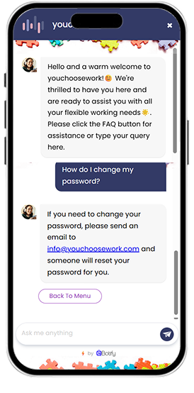 You can get support through our website and web app chatbot or visit our FAQ page for our most frequently asked questions. You can also email our team at info@youchoosework.com